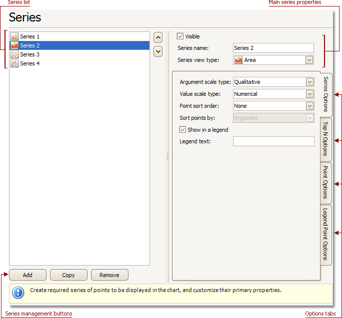 Use the Add, Copy and Remove buttons to manage the series collection.