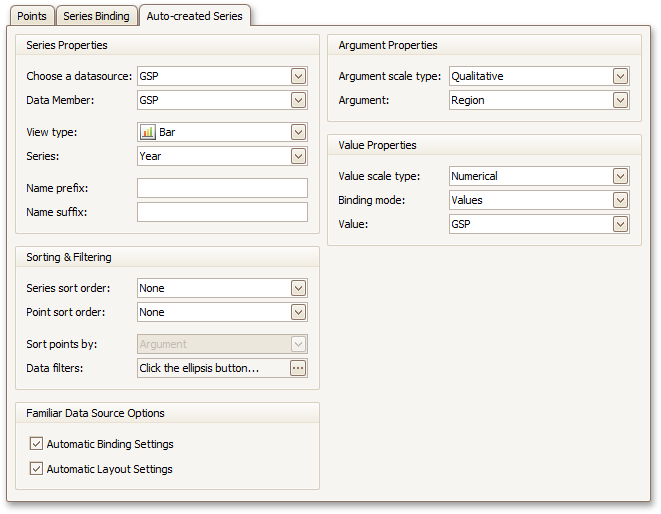 For familiar data sources (such as Pivot Grid), you can choose to automatically adjust the binding and layout settings of your Chart.