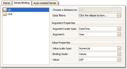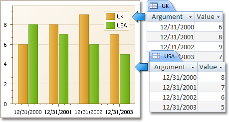 - Bind a chart or individual series to a data source;