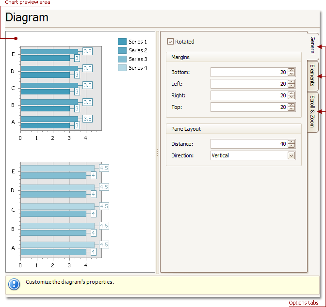 Choose whether a diagram should be rotated, set its padding values, and (if it contains several panes) define the panes' layout direction. -