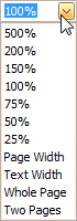 To zoom to the page or text width, click the Zooming box. The following list will be invoked.