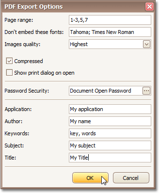 You can also fill the Application, Author, Keywords, Subject, and Title fields.