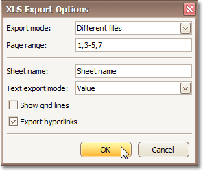When exporting a document, you can define XLS-specific export options using the following dialog.