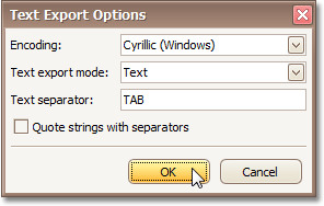 When exporting a document, you can define TXT-specific exporting options using the following dialog.