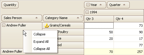 Right-click a value that has nested values, and select the required Expand or Collapse command from the menu that opens: