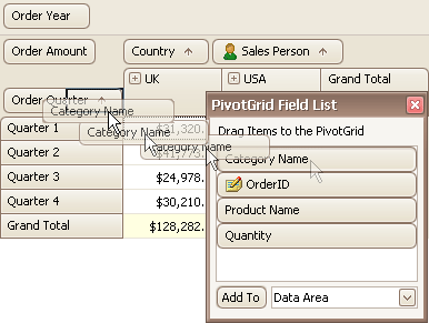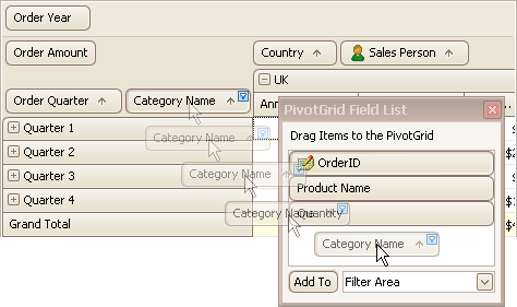 Alternatively, you can drag-and-drop the field from the Customization Form onto the required area of the Pivot Table: