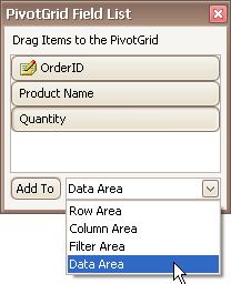 In the dropdown combobox, select the Pivot Table's area within which the field is to be displayed.