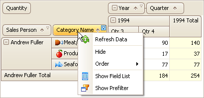 To move a field to a different position within the same area, you can also use the field's context menu: