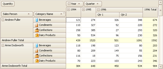 This section describes the capabilities provided by the Pivot Table, which represents data in a cross-tabulated form: