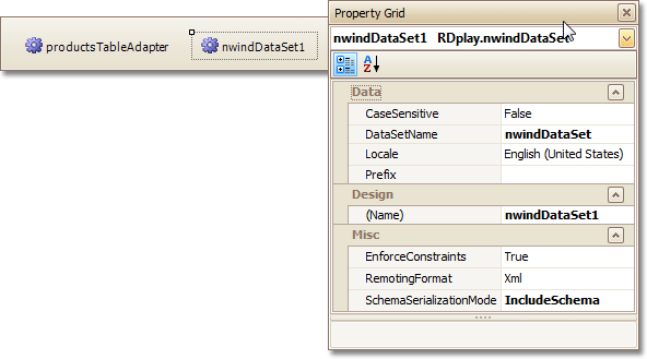 The Component Tray shows components (non-visual report helpers) whose primary purpose is to bind a report to data. You can click them to display and edit their settings using the Property grid.