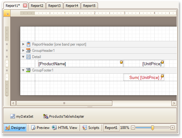 The Design Panel is the Report Designer's main area, where a report is being constructed and previewed.
