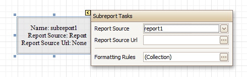 In the Property Grid, the Subreport's properties are divided into the following groups.
