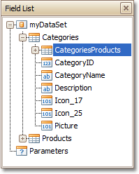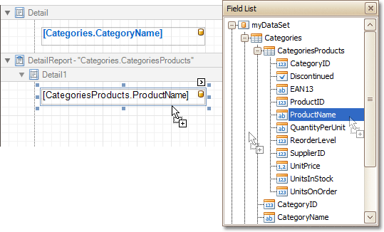 As for the Detail Report band, note that you should drop items from the relation node (in this example it is the Categories Products section), or there will be incorrect output in the report.