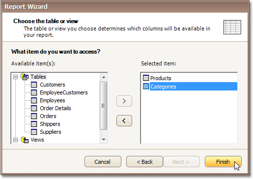 Bind the report to a data source. And, on the Reports Wizard's last page, select the required data tables, and click Finish.