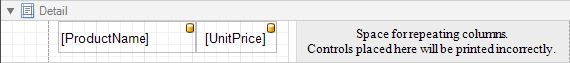 Now, on the Detail band's surface a grey area appears, delimiting the available column's width. Adjust the controls width, so that they fit within the effective borders.
