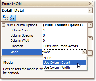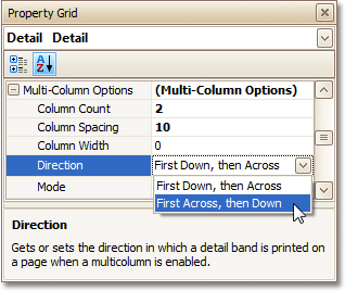 Select the Detail band, and in the Property Grid, expand the Multi-Column Options section.