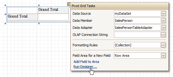 So once again, click the grid's Smart Tag, and in the invoked actions list, click the Run Designer... link.
