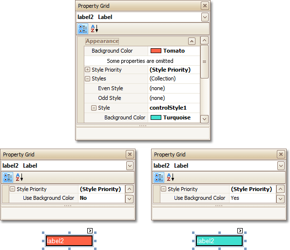 By default, most of the Style Priority's options (Use Background Color, Use Border Color, etc.) are set to Yes. This means that if any style is assigned to a control, its properties will have a higher priority than the appearance properties of this element or its parent. You can assign a higher priority to an element's appearance property, by disabling the corresponding Use* property.