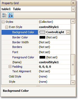 Now, expand the Even Style property, and adjust the required options, e.g. set the Background Color to ControlLight.