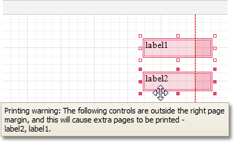 These settings affect the layout of the report's design surface. After their modification, you may notice red warning marks, indicating that the controls go beyond the page width. These warnings can be switched off by setting the Show Printing Warnings property of the report to No.