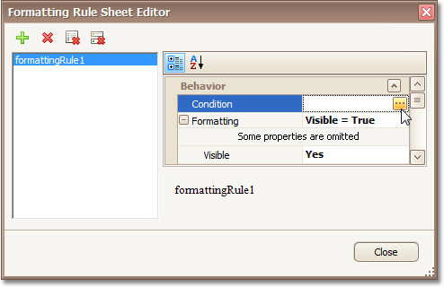 , to create a new formatting rule. Set its Visible property to Yes, and click the ellipsis button for its Condition property.