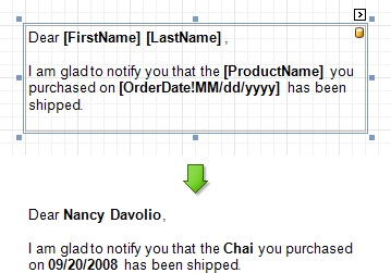 The mail merge feature allows you to combine both static and dynamic content within the same control (e.g. to append some text prefix or postfix to a value obtained from a database), or even bind a control to multiple data fields at one time.