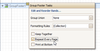 Finally, select the Group Footer, and click its Smart Tag. In its actions list, check the Repeat Every Page option.